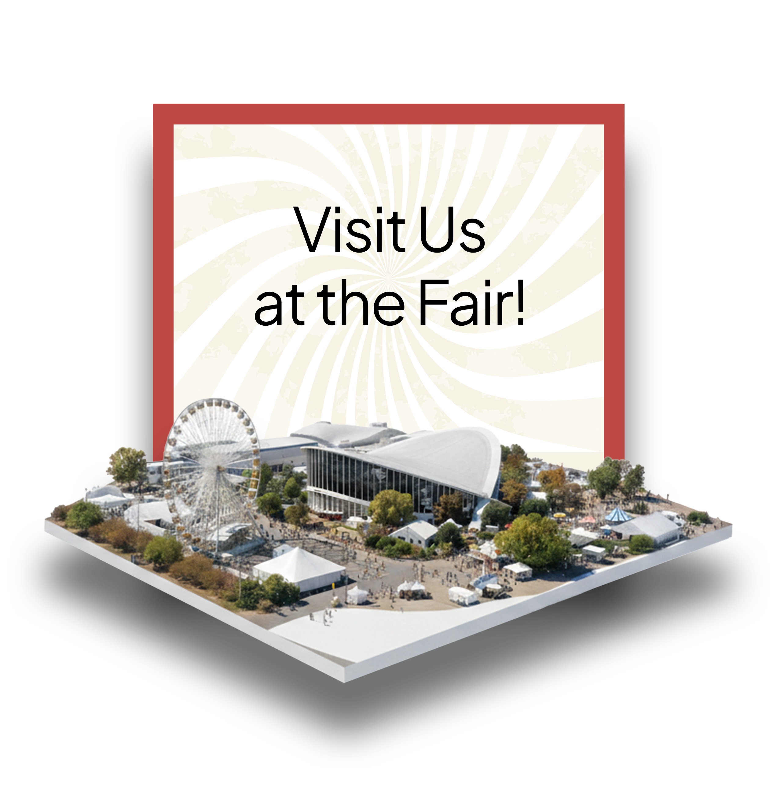 Booth Location: Under the BIG tent on the South side of Dorton Arena, between Gates 2 & 3. You can’t miss us — we’re right next to the HUGE Stargazer Ferris Wheel!
