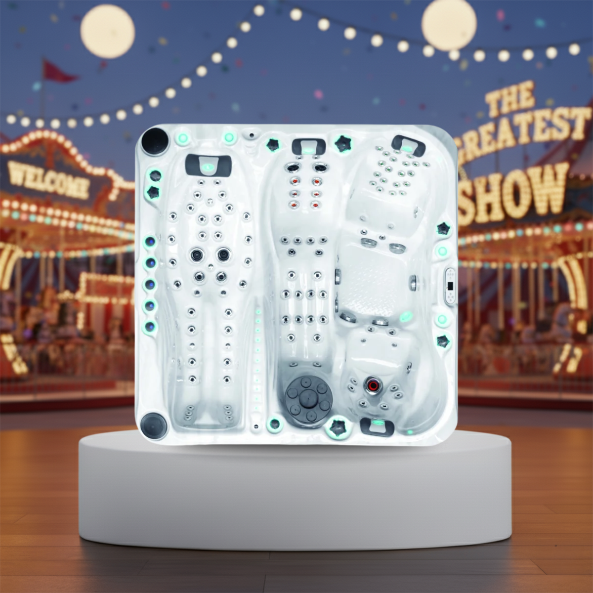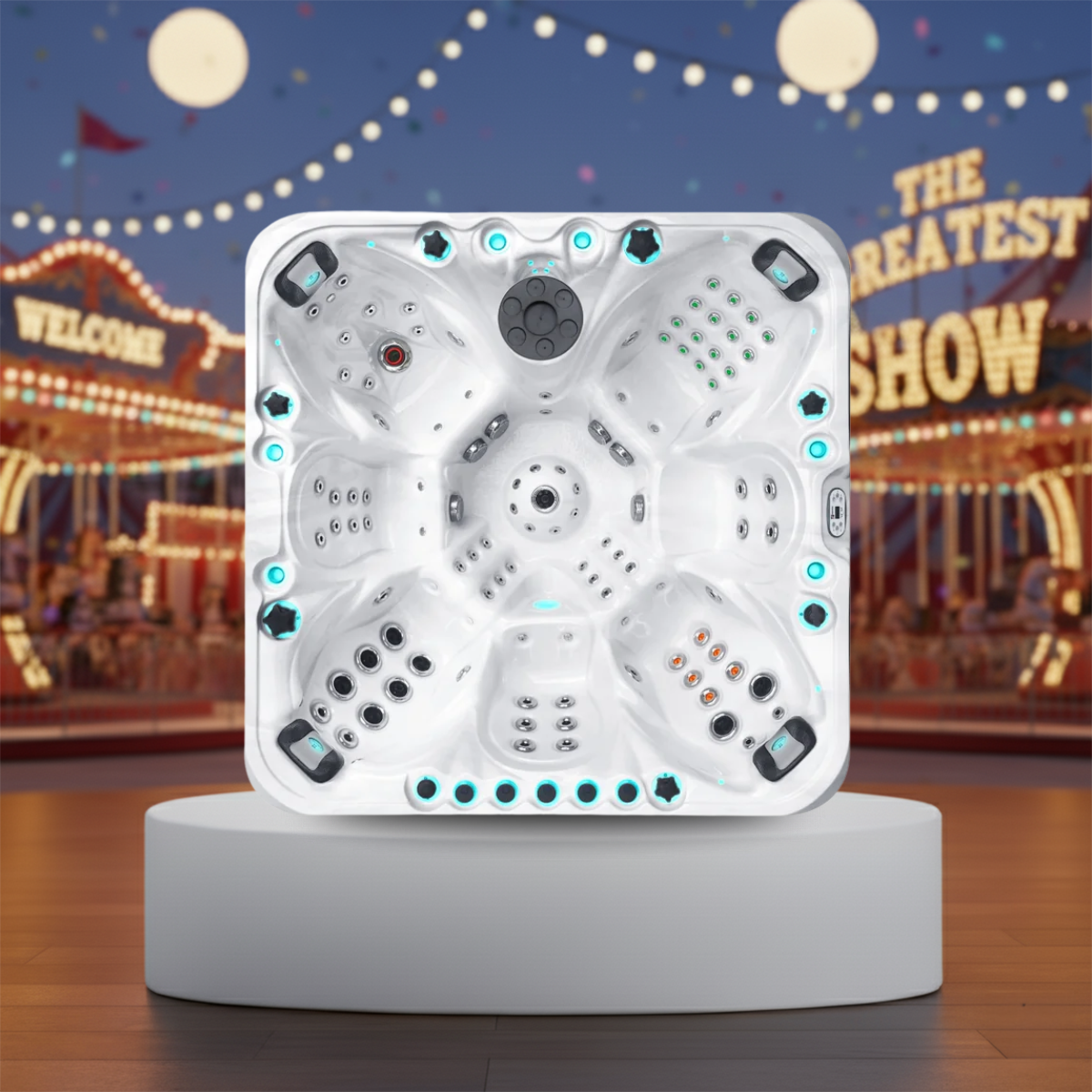 The Excite is a spacious spa that provides room for up to seven people. Full bench seating combined with a variety of massage experiences makes the Excite a unique and highly therapeutic spa.